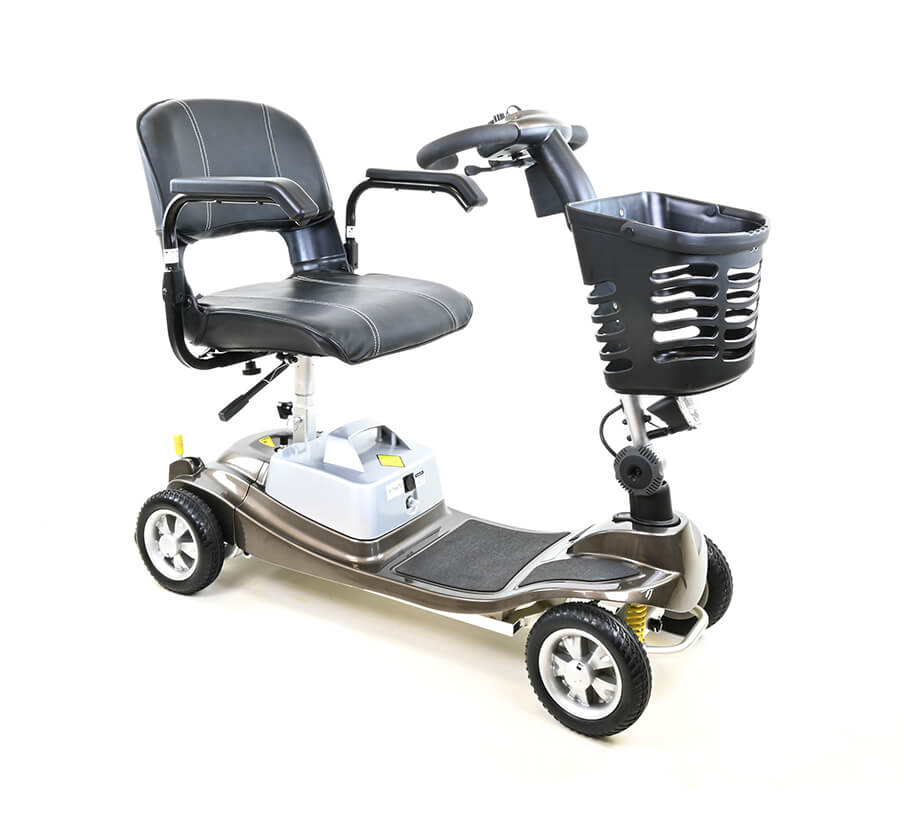 The Illusion is purposefully designed to be as light as possible, combining aircraft-grade aluminium components with an ultra-light (but still powerful) lithium battery pack. Weighing in at 30.7 kg (68 lbs) when fully assembled, the Illusion is the world’s lightest full-suspension, four-wheel mobility scooter.